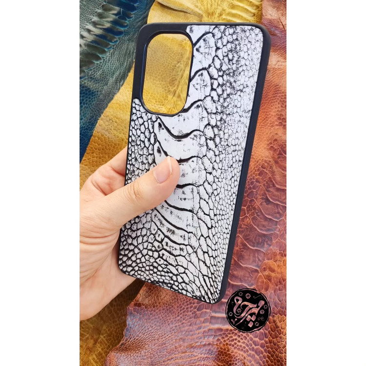 قاب چرمی خاصی که در تصویر میبینی، از چرم طبیعی با طرح پوست خزنده ساخته شده و بافت منحصربهفردش جلوهای لوکس و متفاوت به گوشی میدهد.
