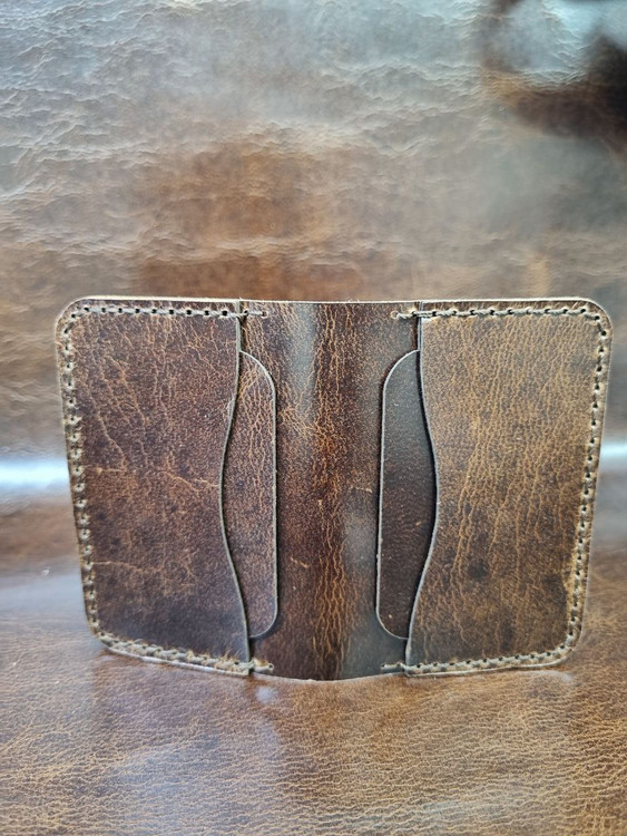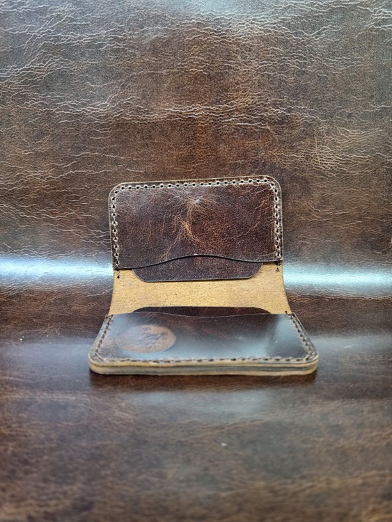جاکارتی چرمی دست‌دوز بزی با ۸ جای کارت رنگ فندقی