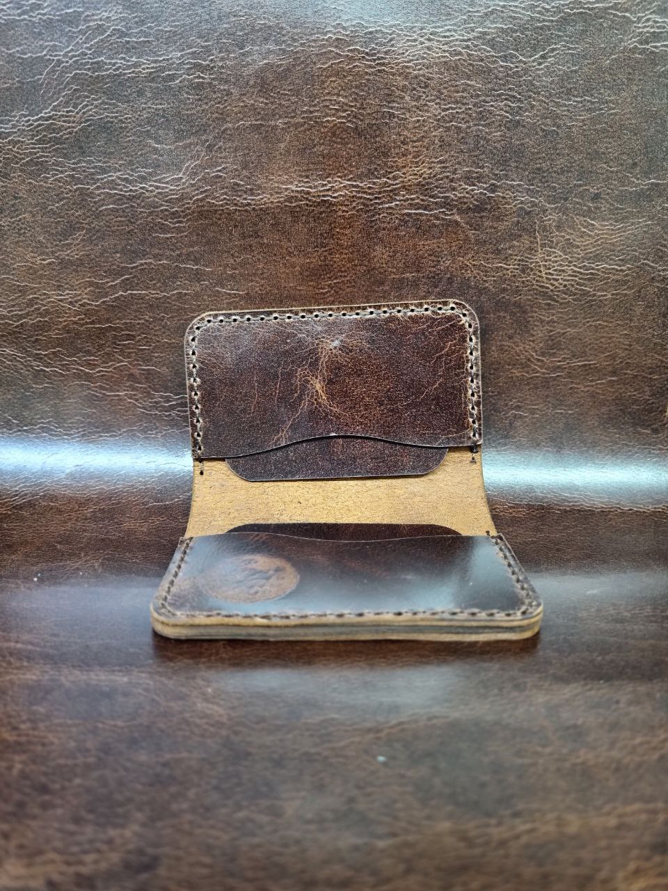 جاکارتی چرمی دستدوز بزی با ۸ جای کارت رنگ فندقی