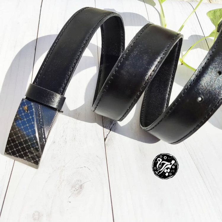 رنگ مشکی این کمربند، استایلی کلاسیک و همیشهجذاب ایجاد میکند و سگک فلزی براق آن جلوهای مردانه و خاص به ظاهر شما میبخشد.