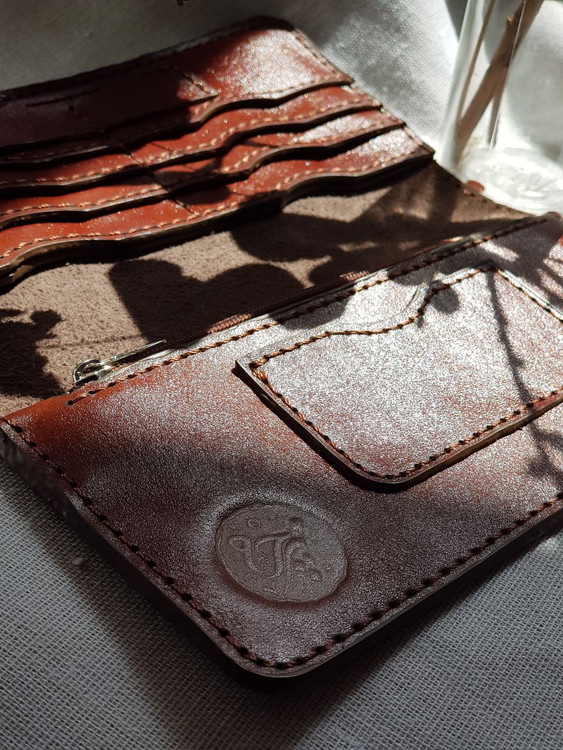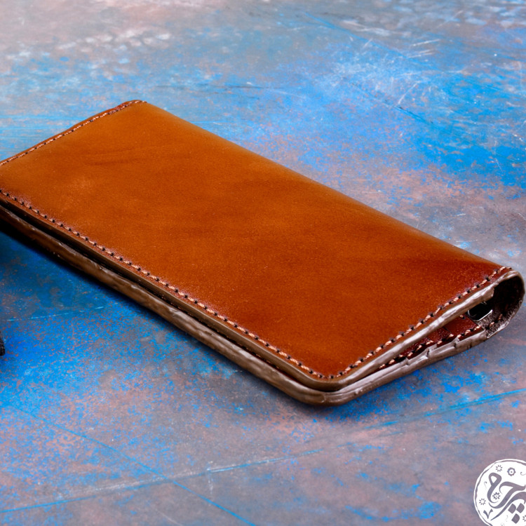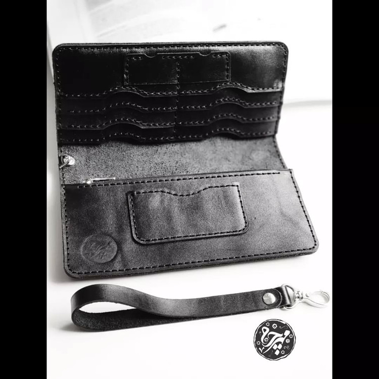 کیف پول دستی اسپرت، چرمدوزی با دست از چرم طبیعی گاوی. سایز ۱۱×۲۳
