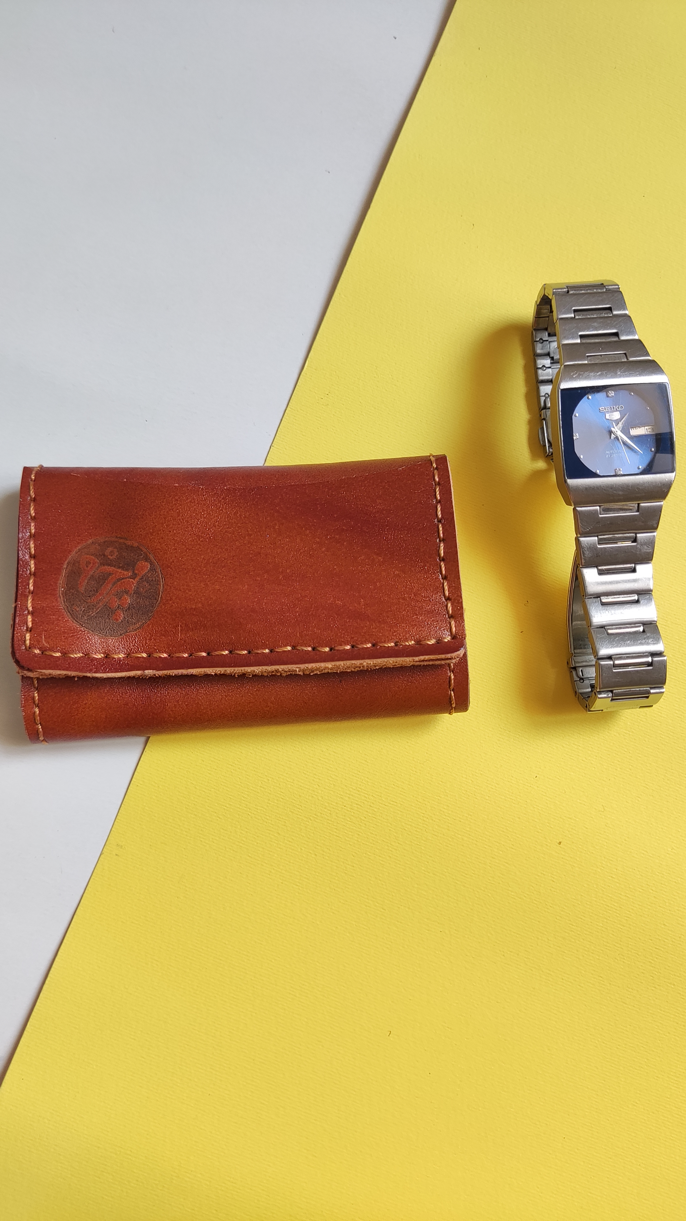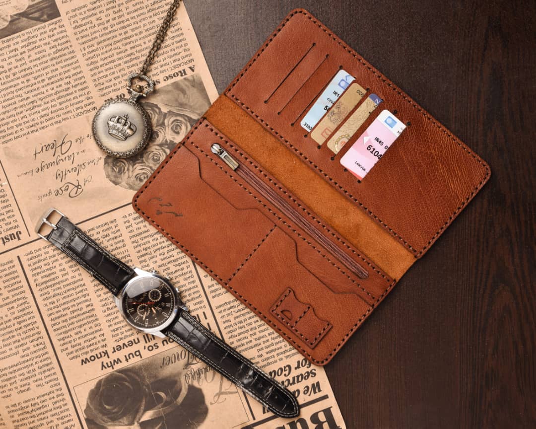 کیف پول کیهان دستدوز چرم بزی قهوه ای